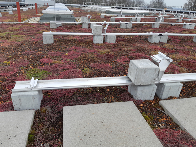 The quick and easy to install flat roof system TRIC F Duo East/West 10° was chosen as the mounting system.